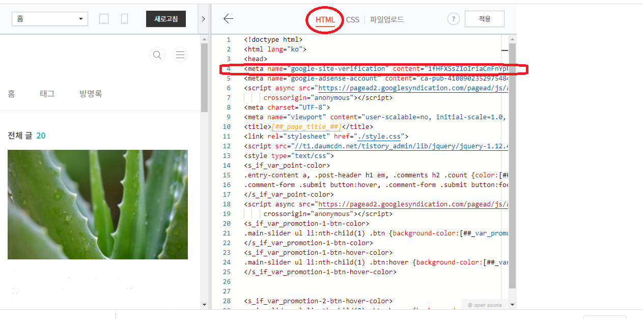 8-2. 설정-소유권인증-HTML태그-복사