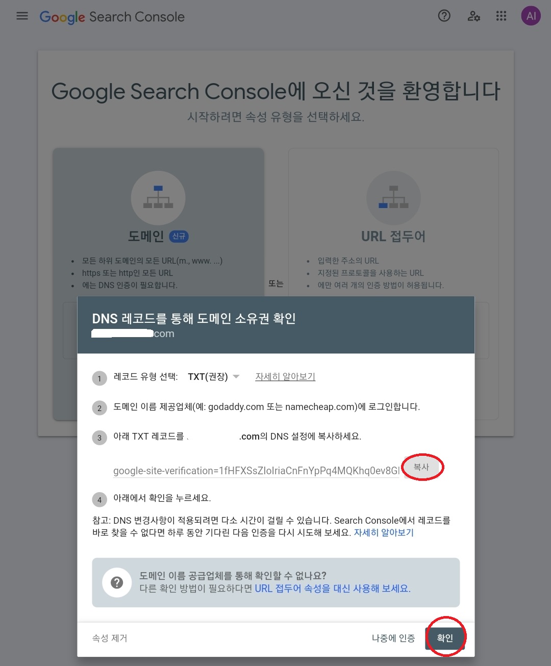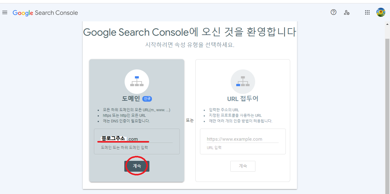 3. 구글서치콘솔-도메인-블로그주소입력-계속