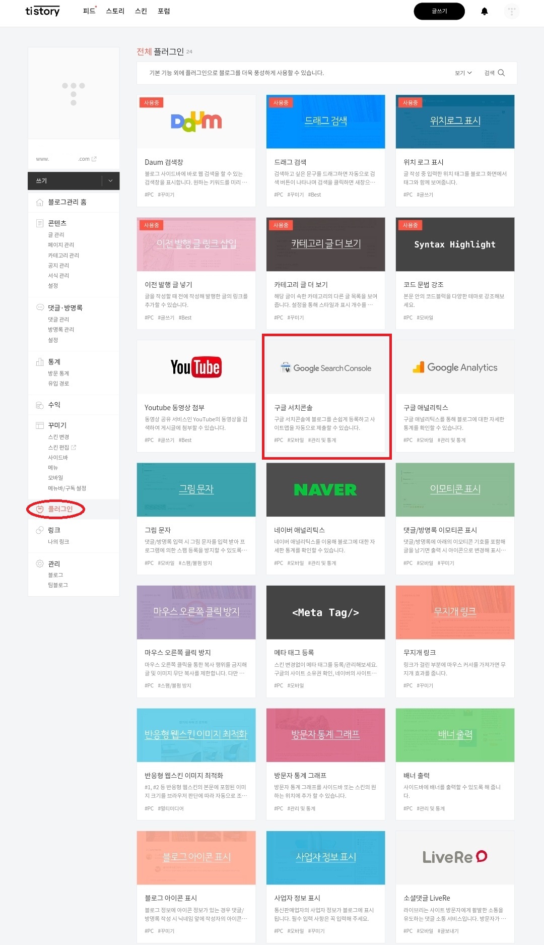 1. 티스토리 플러그인-구글서치콘솔