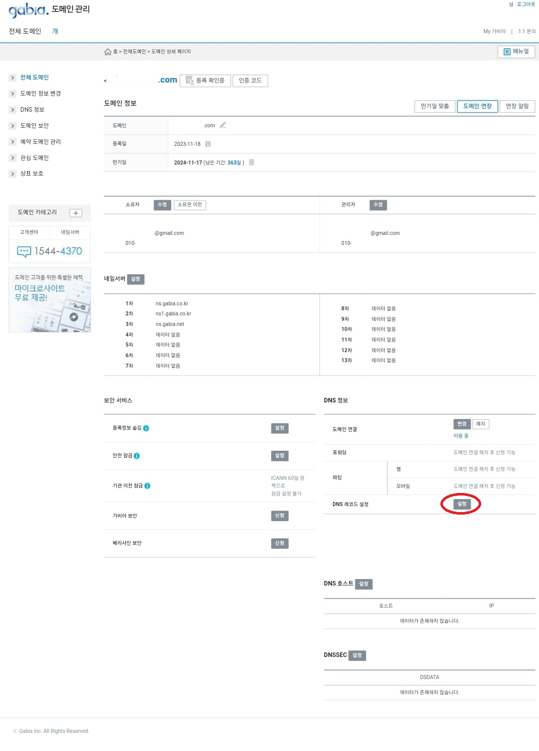 5. 가비아 DNS설정-설정
