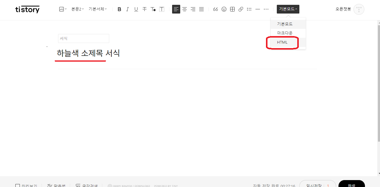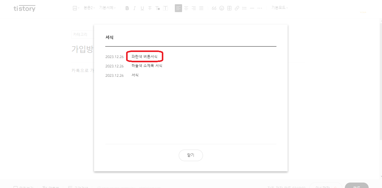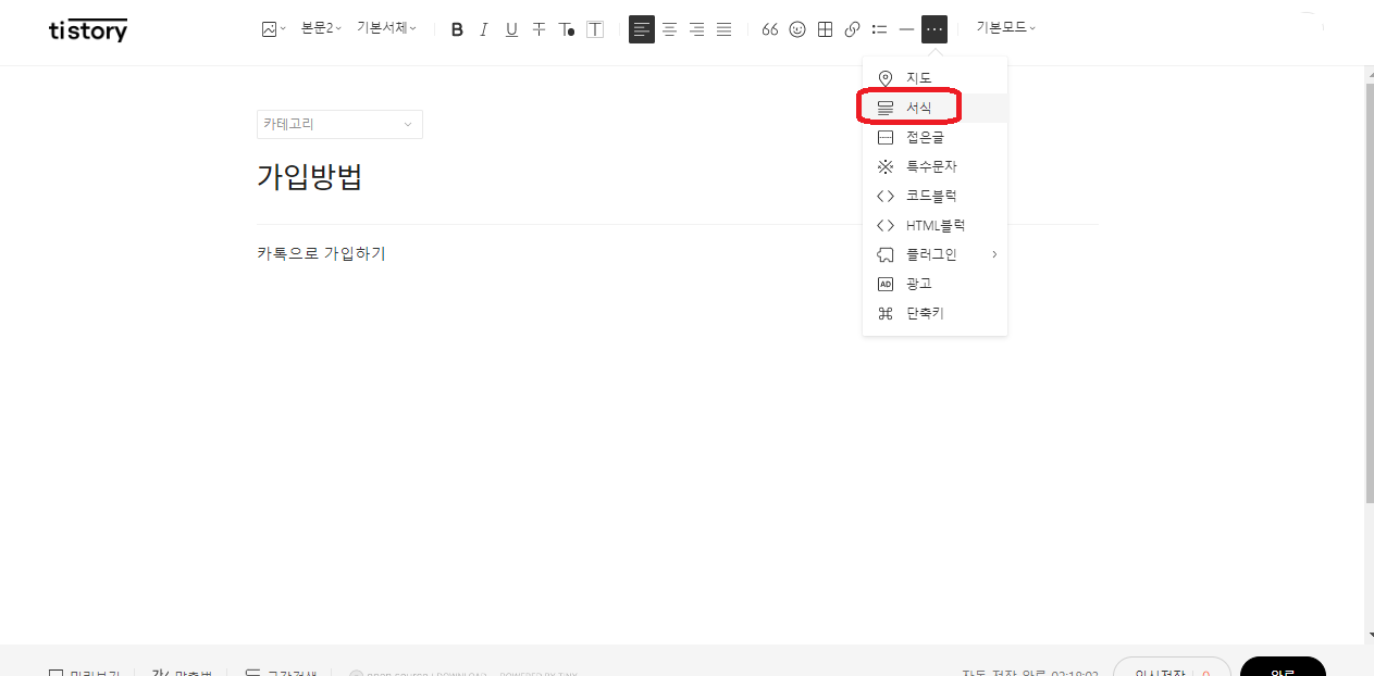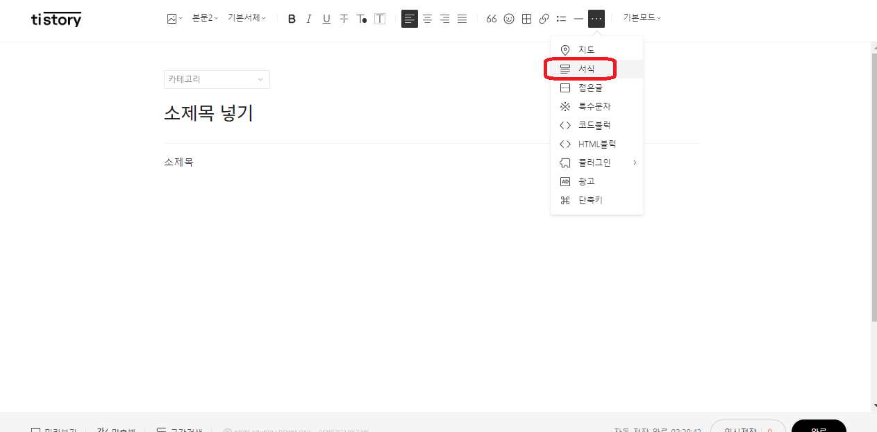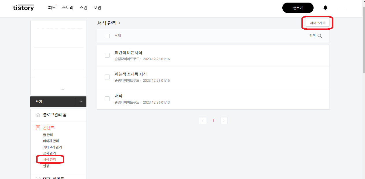 1. tistory관리-서식관리-서식쓰기