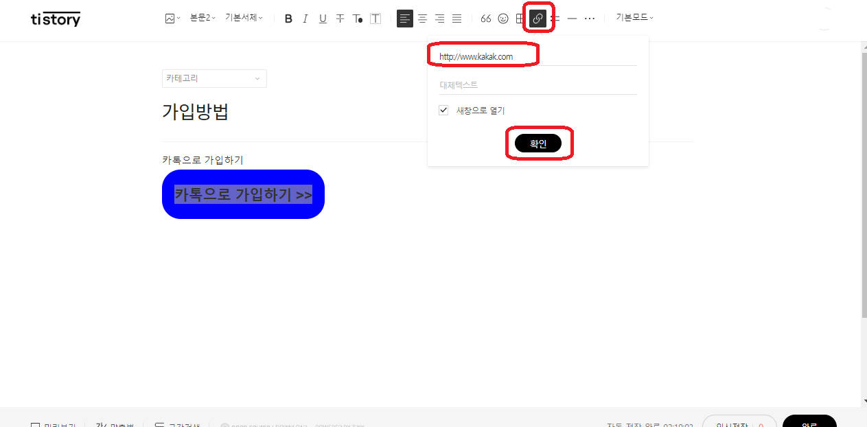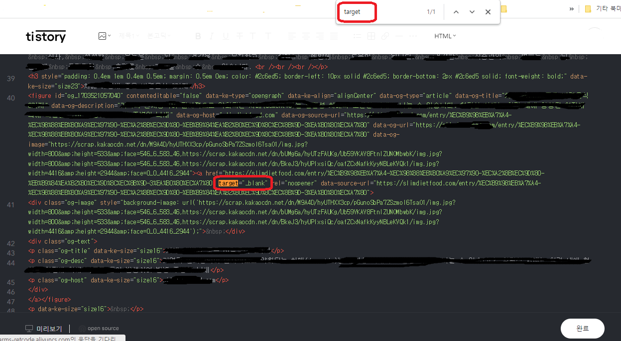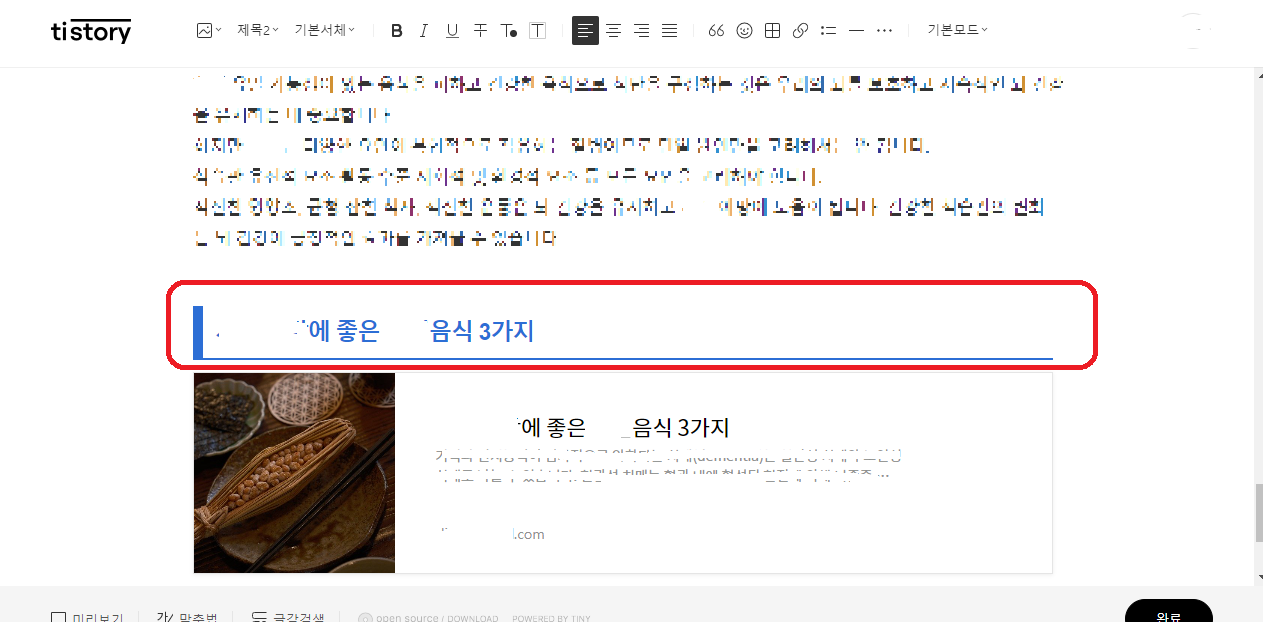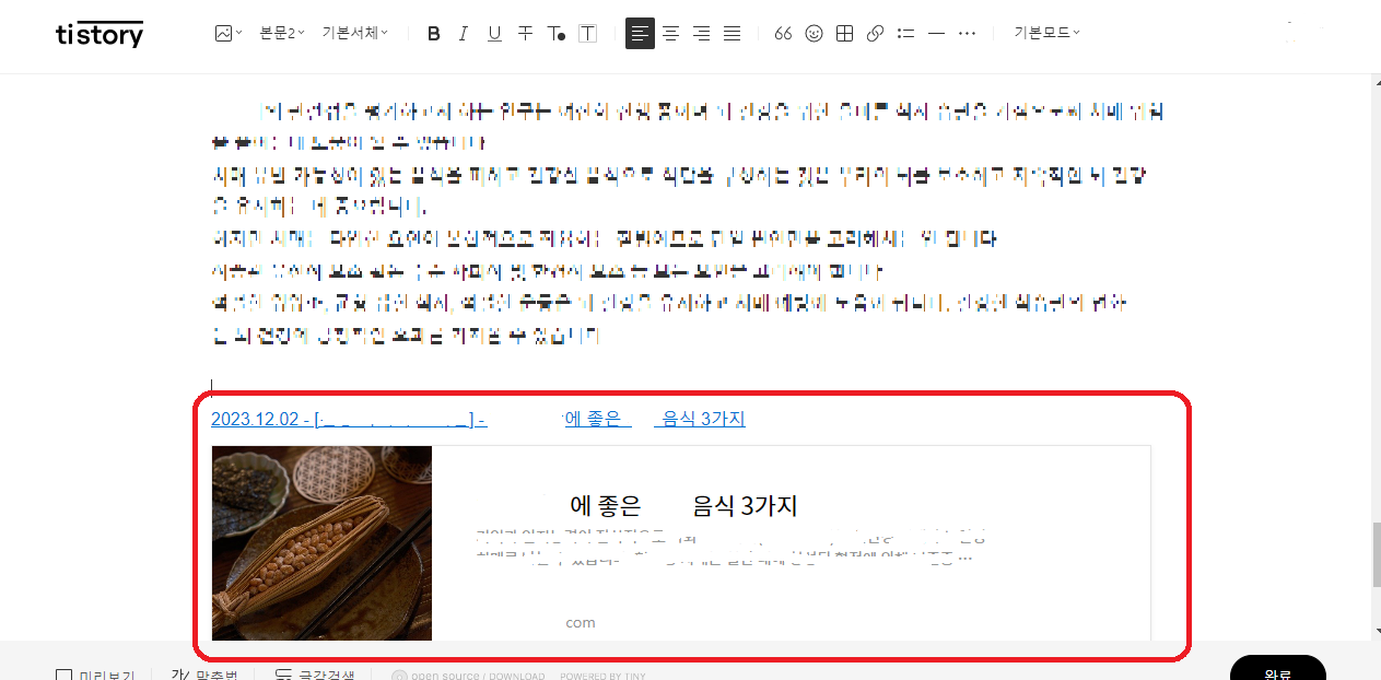 16. 이전 발행글 선택하여 링크 삽입후 엔터-이전글 박스생성