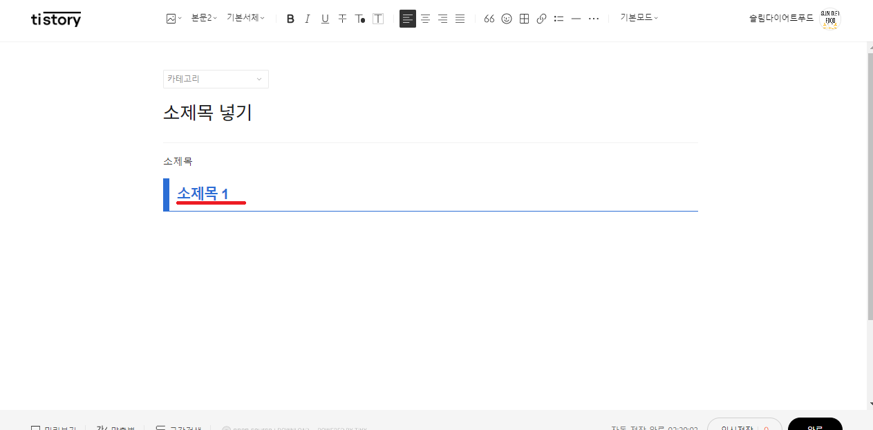 3. 소제목 코드 붙여넣기