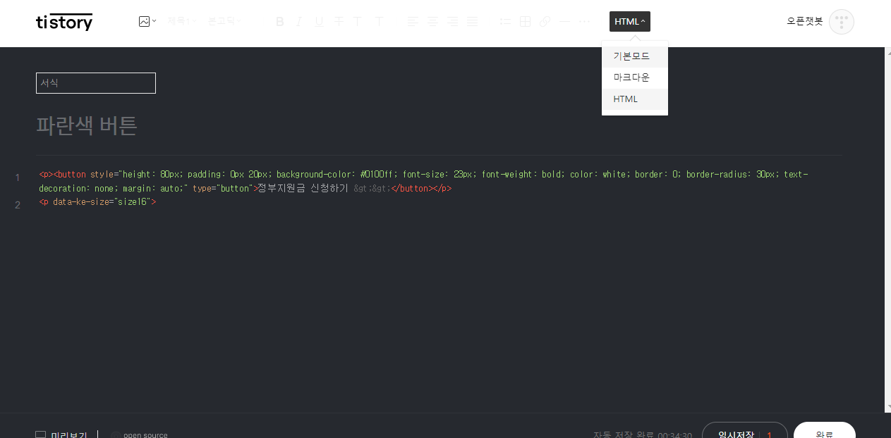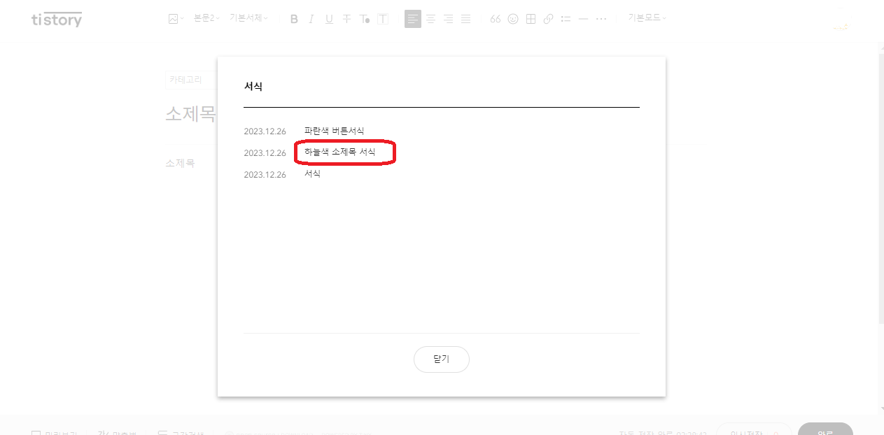 소제목, 버튼 서식, 이전 발행글 삽입 (애드센스 승인후)