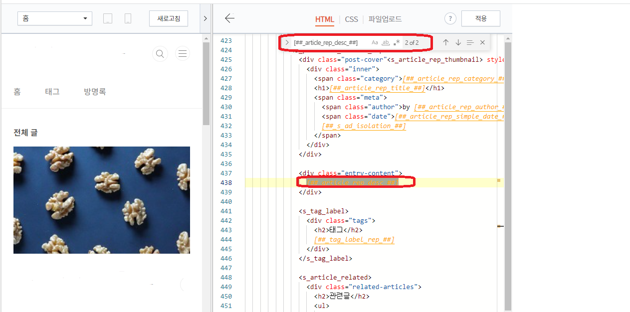 2. 코드 편집화면 클릭후 찾기(ctrl+F)- ##_article_rep_desc_## 검색